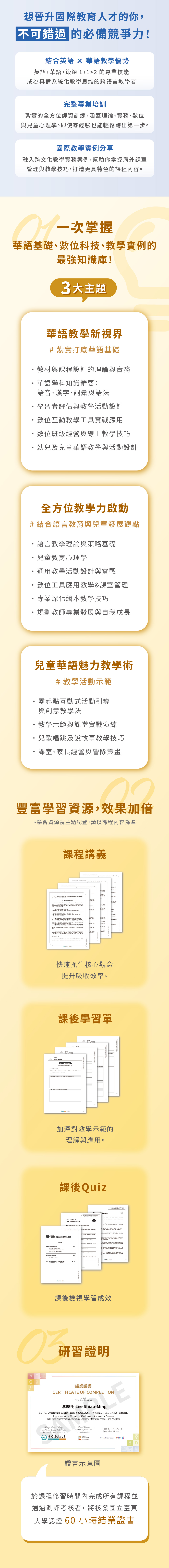 1. 若您預計申請【兒童華語師資課程】結業證書,請於完成購課流程後,並需完成填寫兒童華語課程 Google報名表單 (https://forms.gle/6FjETMJk9b9jwgJ16)。
