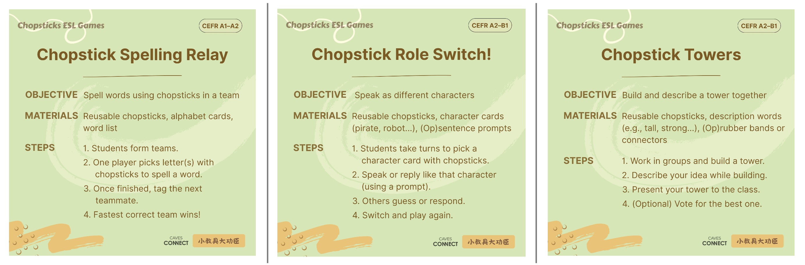 在這三個以筷子為核心的活動中,學生不只是在「用筷子」,而是在「用身體參與語言學習」。透過操作、轉換身分與共同建構,他們在互動中練習的不只是英文單字和句型,更是在語境裡表達、協商、描述與想像。當語言與動作、情緒、角色和任務結合時,學習變得更沉浸,也更容易留下記憶的痕跡。