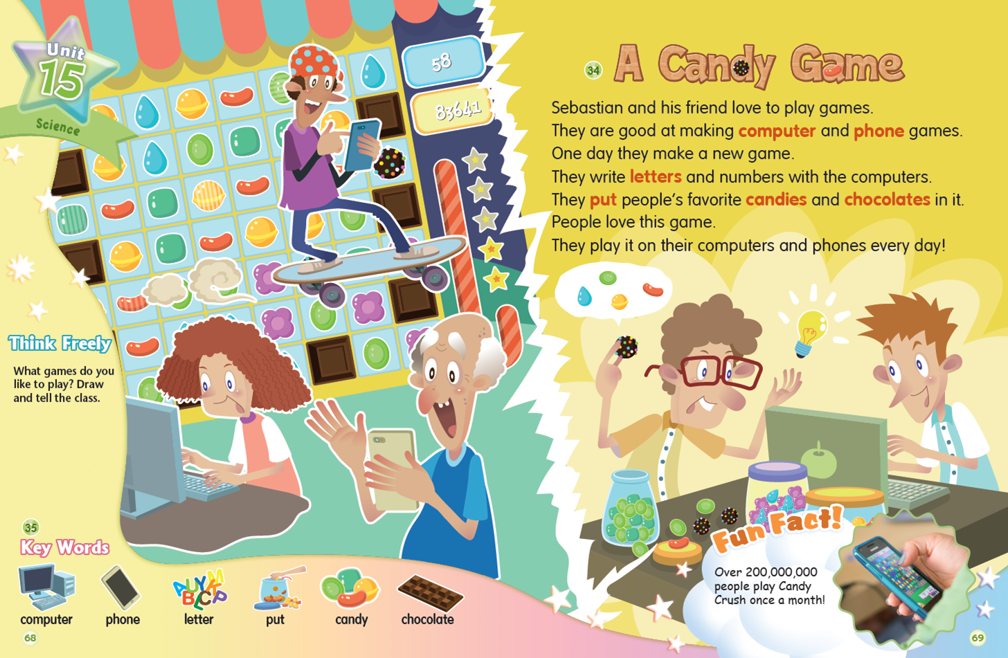 學生在閱讀時,會先注意到角色如何設計遊戲,以及玩家為何產生興趣;像 computerphoneletter 等詞彙,則會在理解情境的過程中自然地反覆出現。